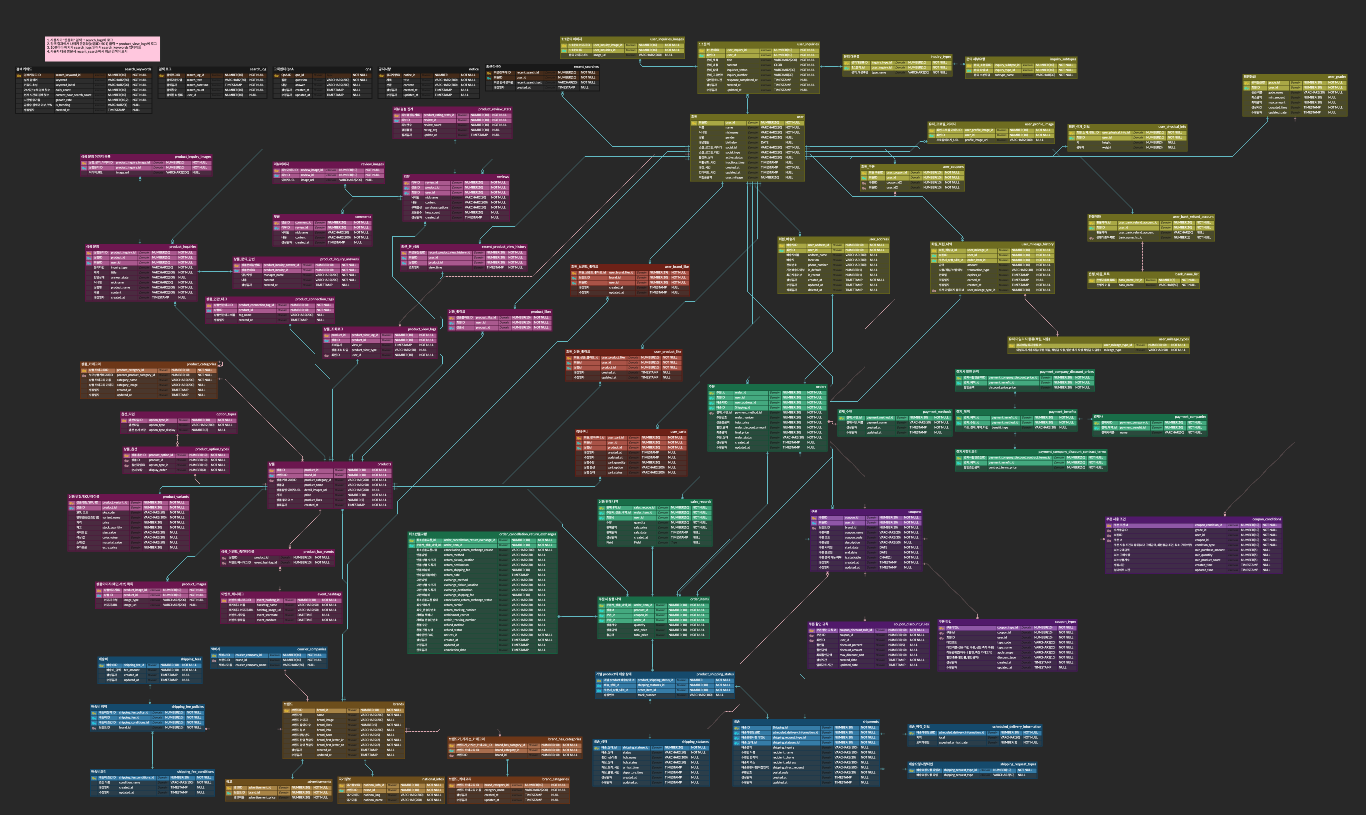 기능 하나하나를 구현해가면서, 조건들이 무엇이 있고, 기능이 어떤 식으로 흘러가고, 데이터가 많아졌을 때 혹은 사용자가 많아졌을 때를 고려한 테이블 설계를 하다보니 70개의 테이블이 만들어졌다.